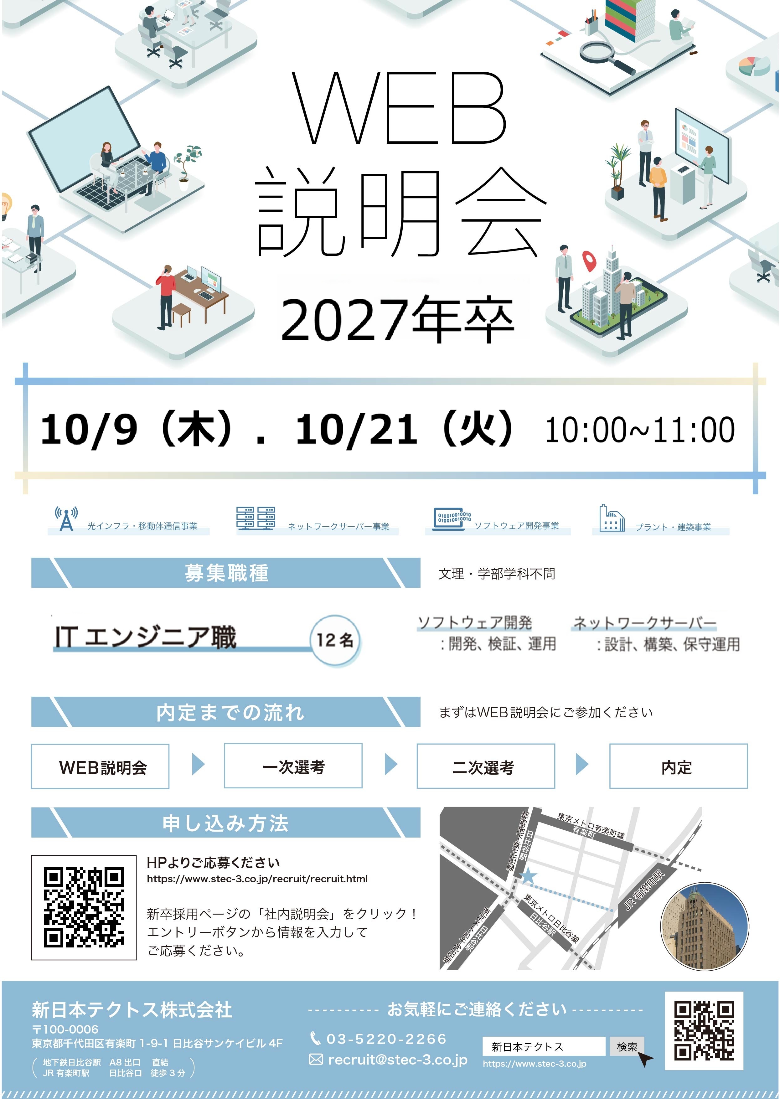 応募条件 2026年3月卒業見込み者(既卒3年以内も可) 募集職種 - ○ITエンジニア職